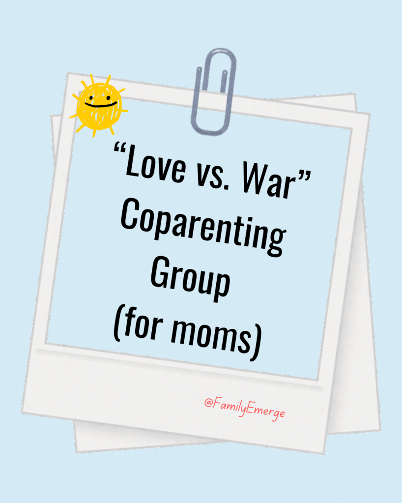 It’s a friendly space to connect and find balance between love and the occasional war of raising kids with your coparent. Your voice is important and your story is too!